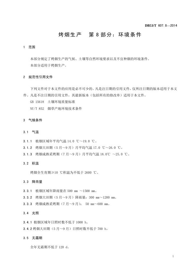 DB53/T 607.8-2014 烤烟生产 第8部分:环境条件