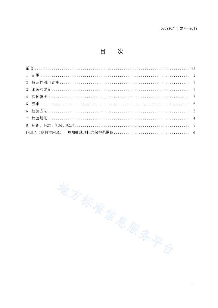 DB5226/T 214-2019 地理标志产品 思州柚