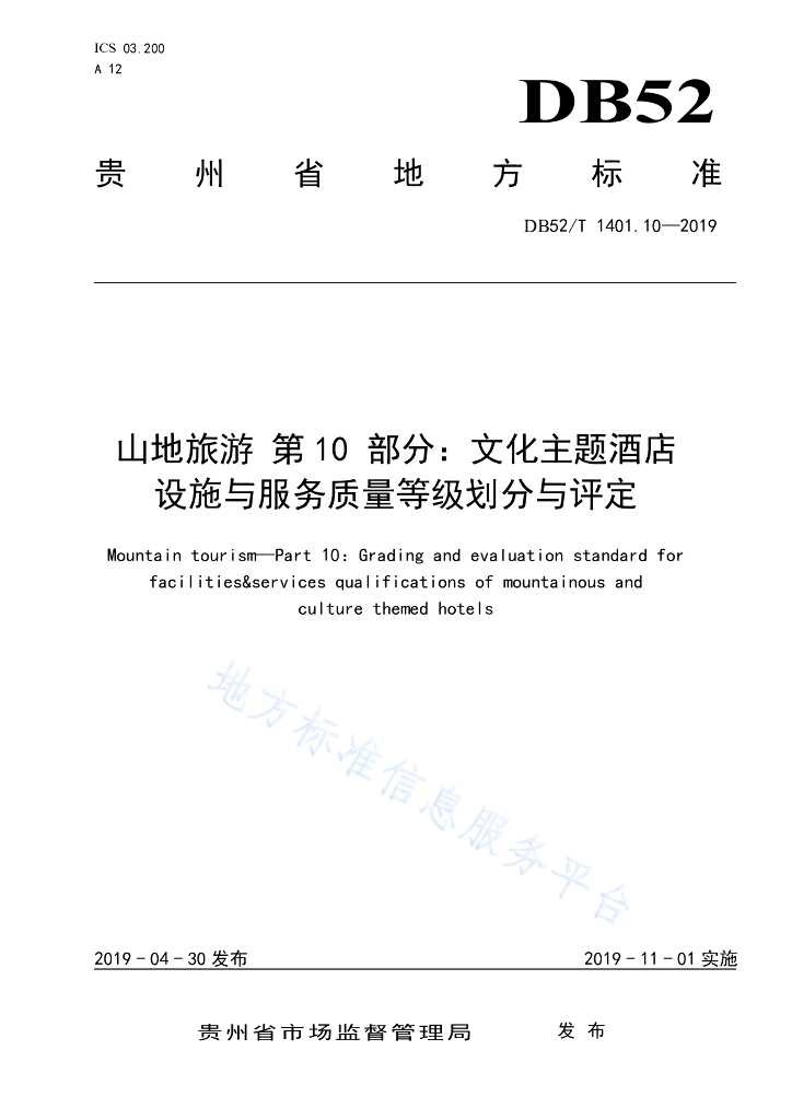 DB52/T 1401.10-2019 山地旅游 第10部分:文化主题酒店设施与服务质量等级划分与评定