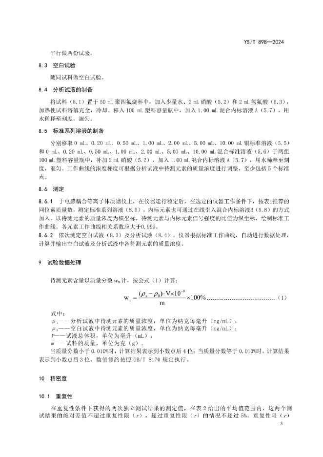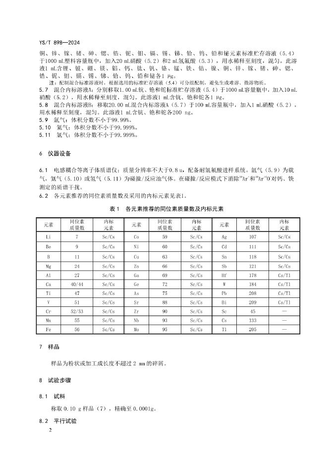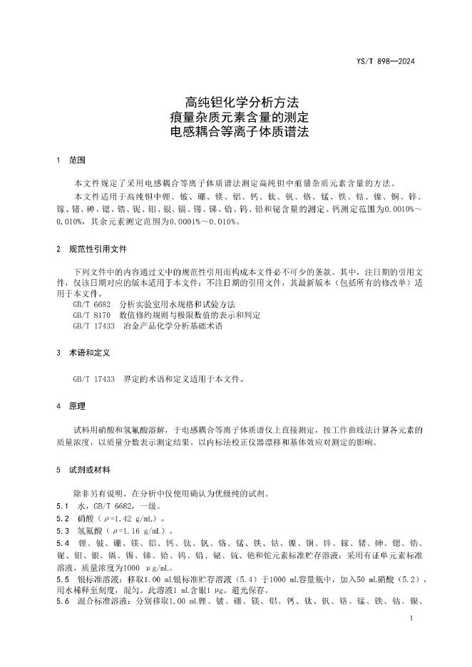 YS/T 898-2024 高纯钽化学分析方法 痕量杂质元素含量的测定 电感耦合等离子体质谱法