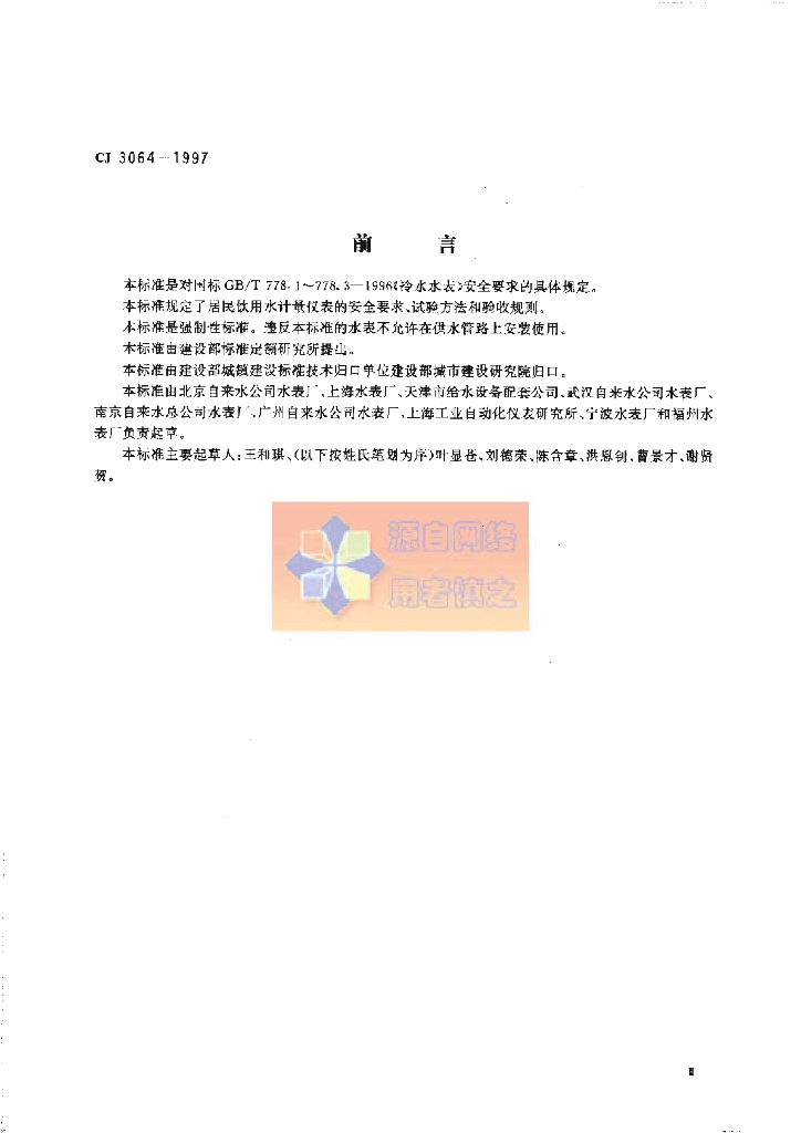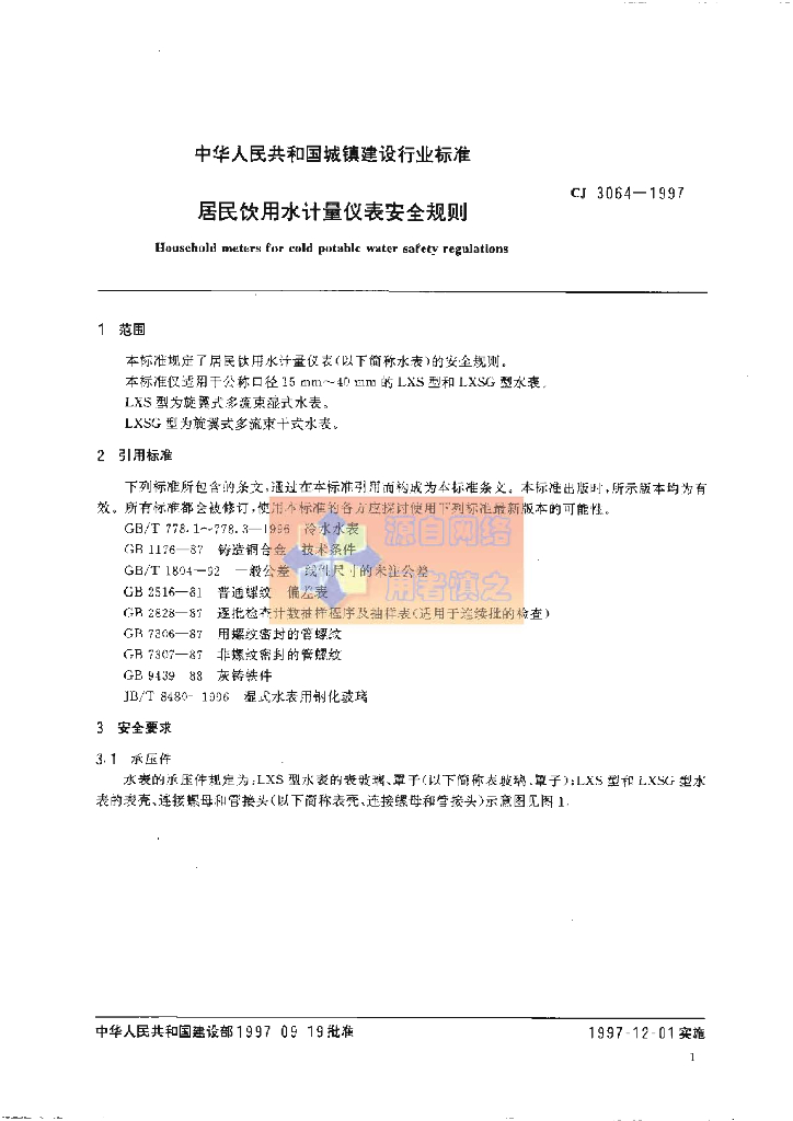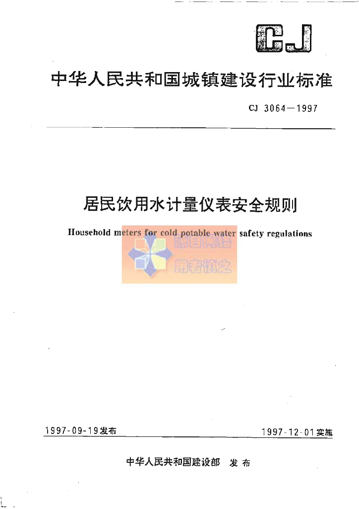 CJ 3064-1997 居民饮用水计量仪表安全规则