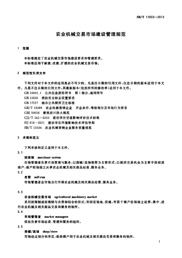 SB/T 11033-2013 农业机械交易市场建设管理规范