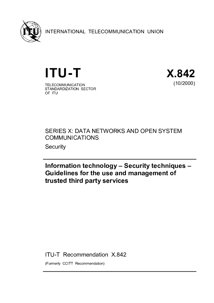 ITU-T X.842-2000 信息技术 安全技术 可信的第三方业务的使用和管理的指导方针