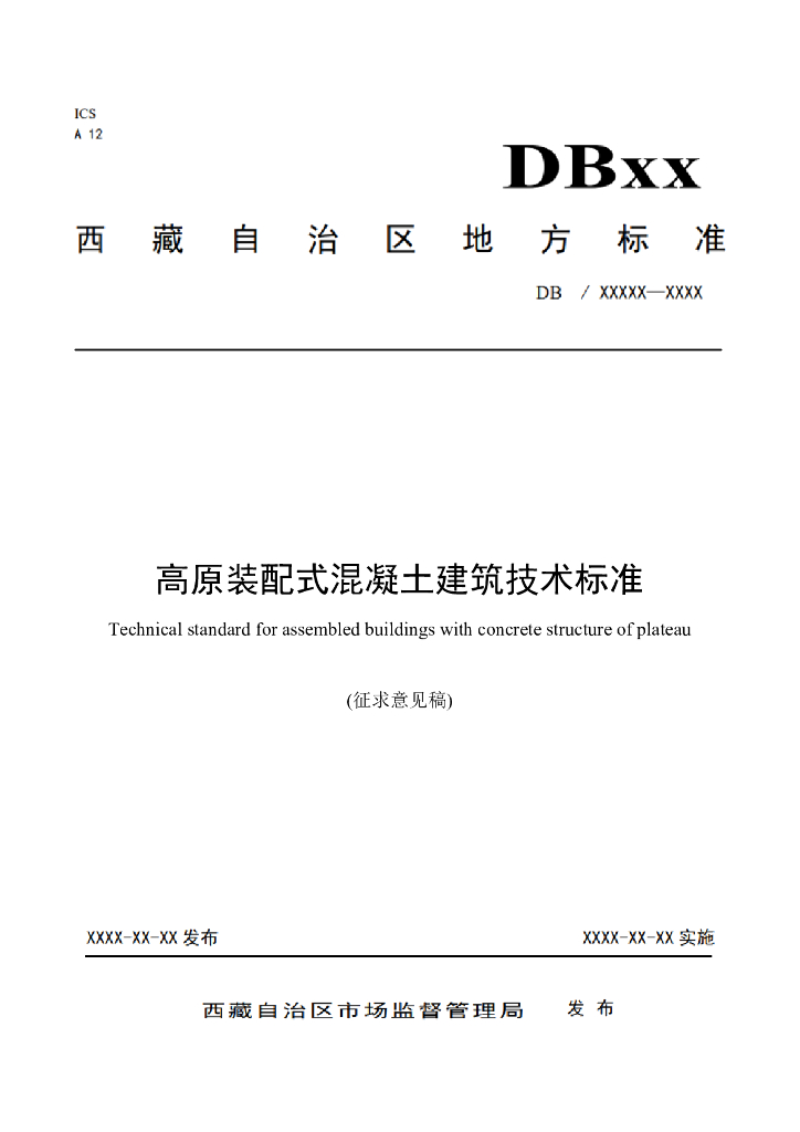DB/ XXXXX-XXXX 高原装配式混凝土建筑技术标准(征求意见稿)