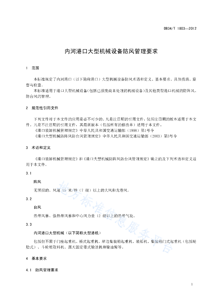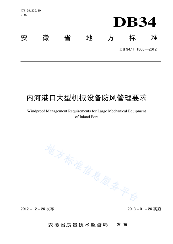 DB34/T 1803-2012 内河港口大型机械设备防风管理要求