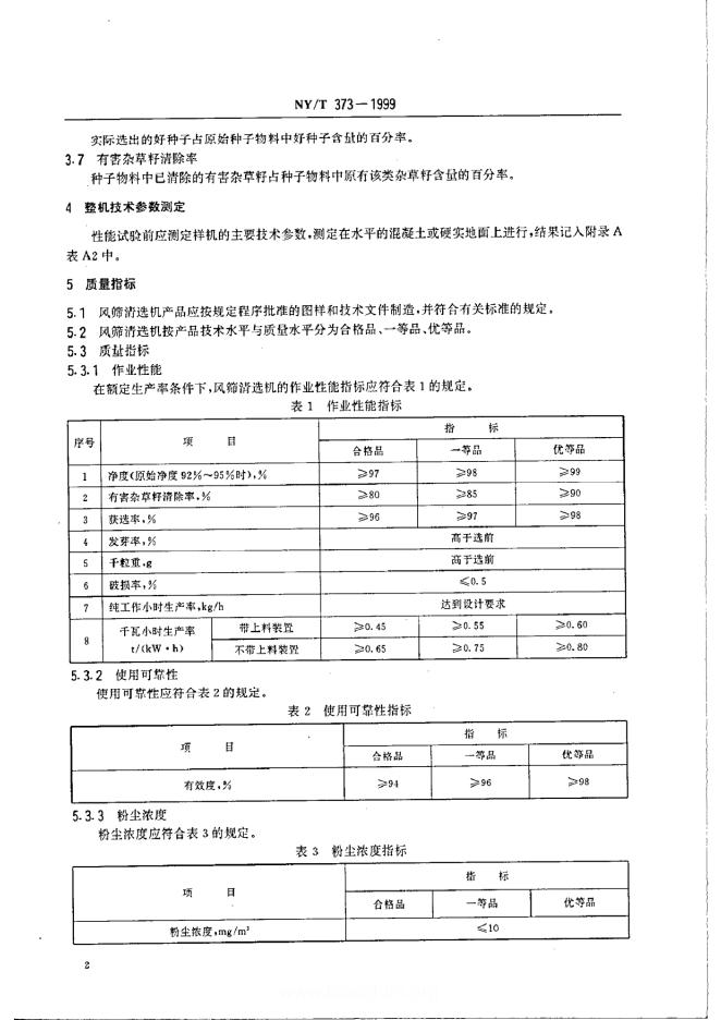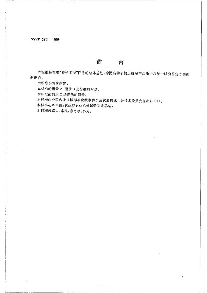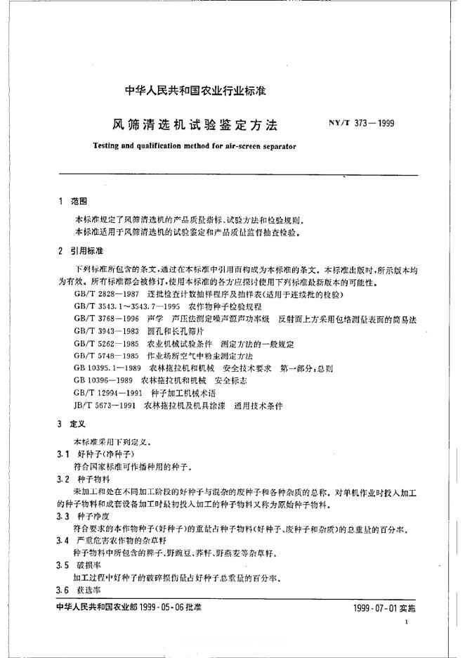 NY/T 373-1999 风筛清选机试验鉴定方法