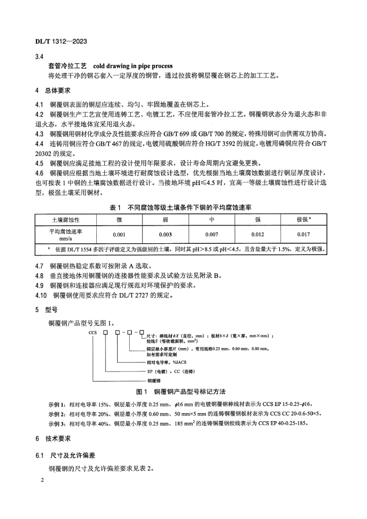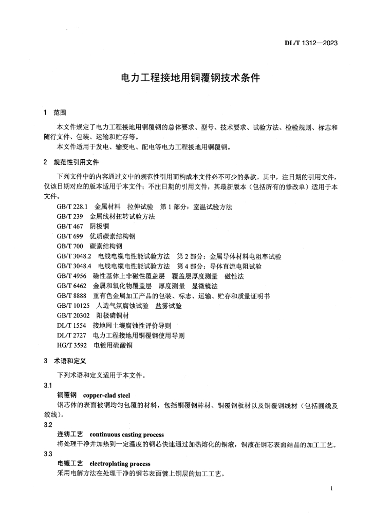 DL/T 1312-2023 电力工程接地用铜覆钢技术条件