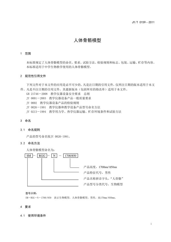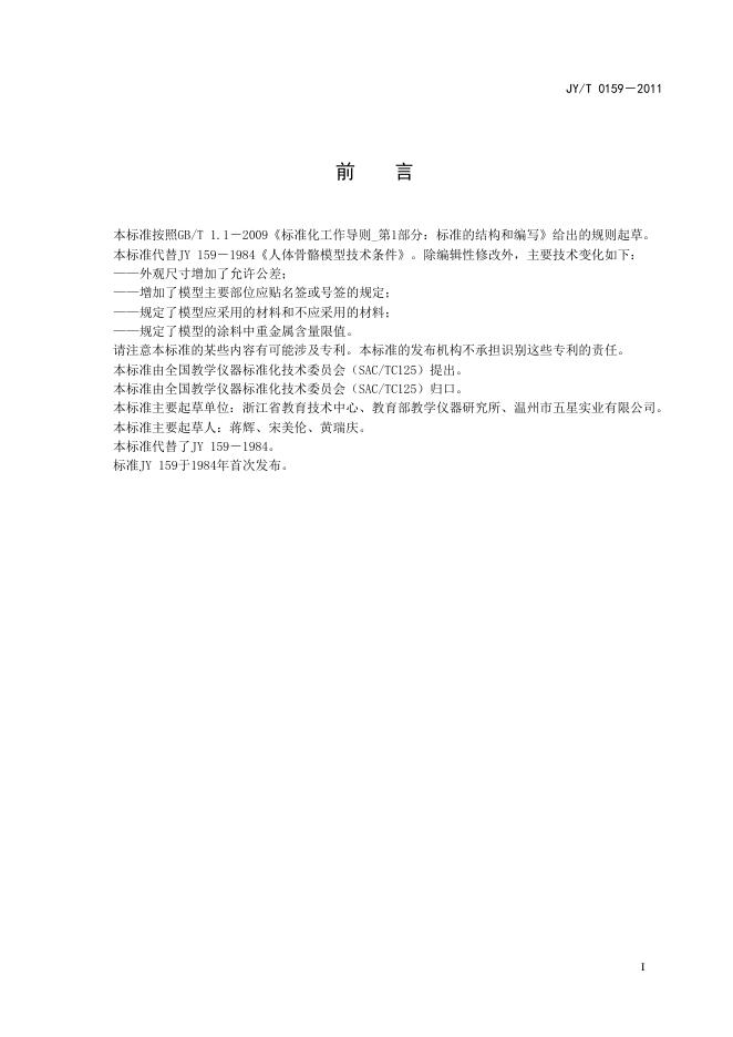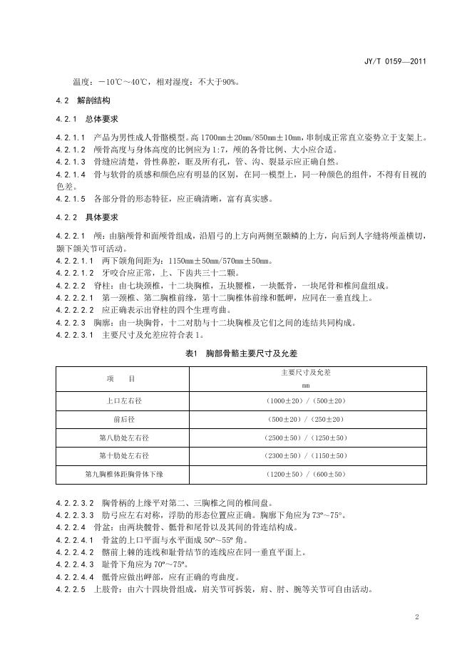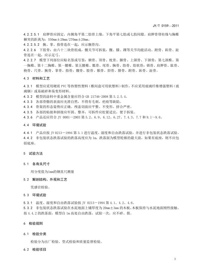 JY/T 0159-2011 人体骨骼模型