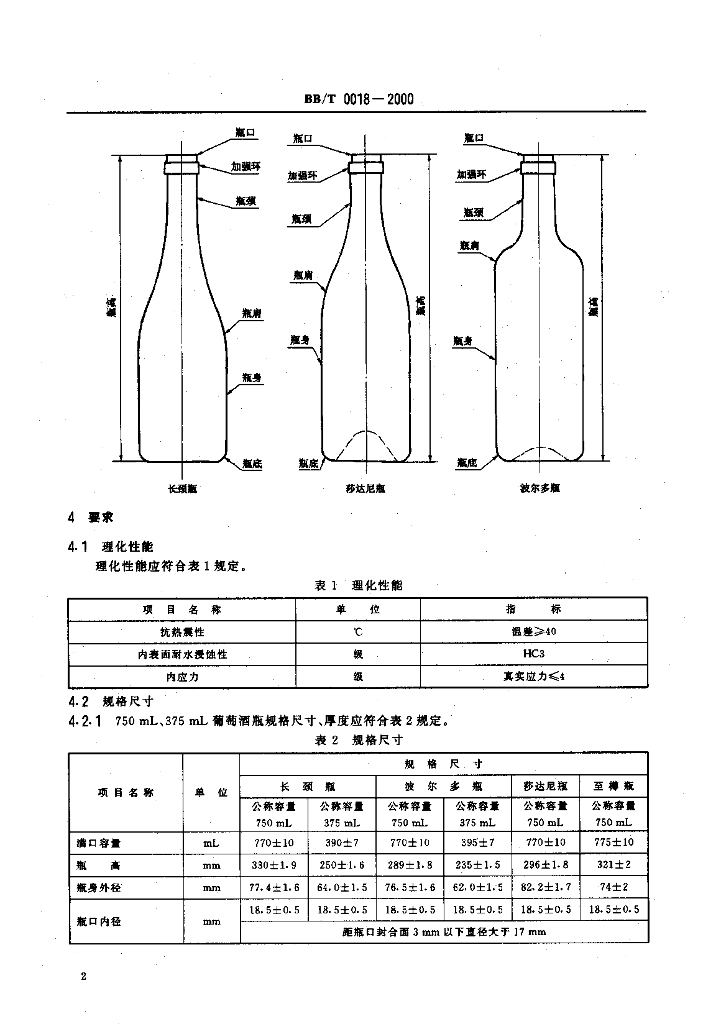 BB/T 0018-2000 包装容器 葡萄酒瓶