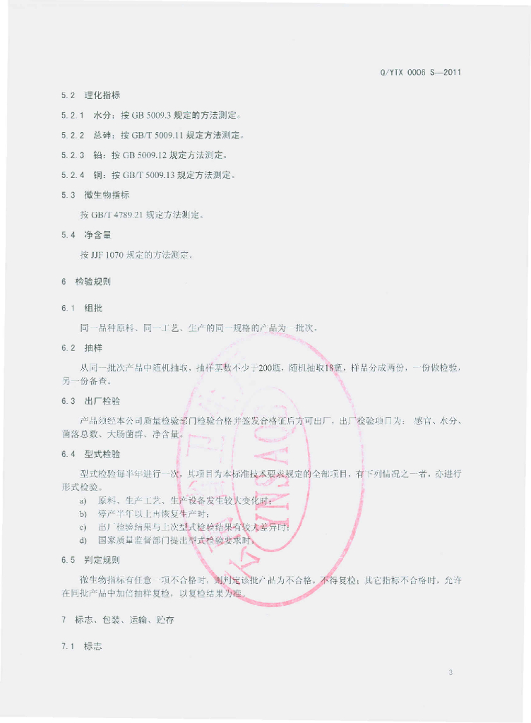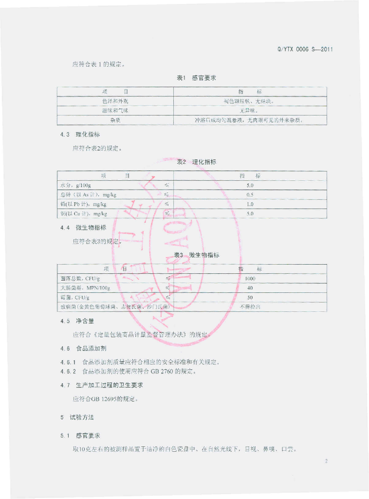 Q/YTX 0006S-2011 天秀牌固体饮料