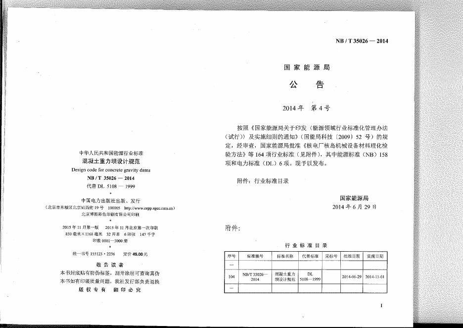 NB/T 35026-2014 混凝土重力坝设计规范(附条文说明)