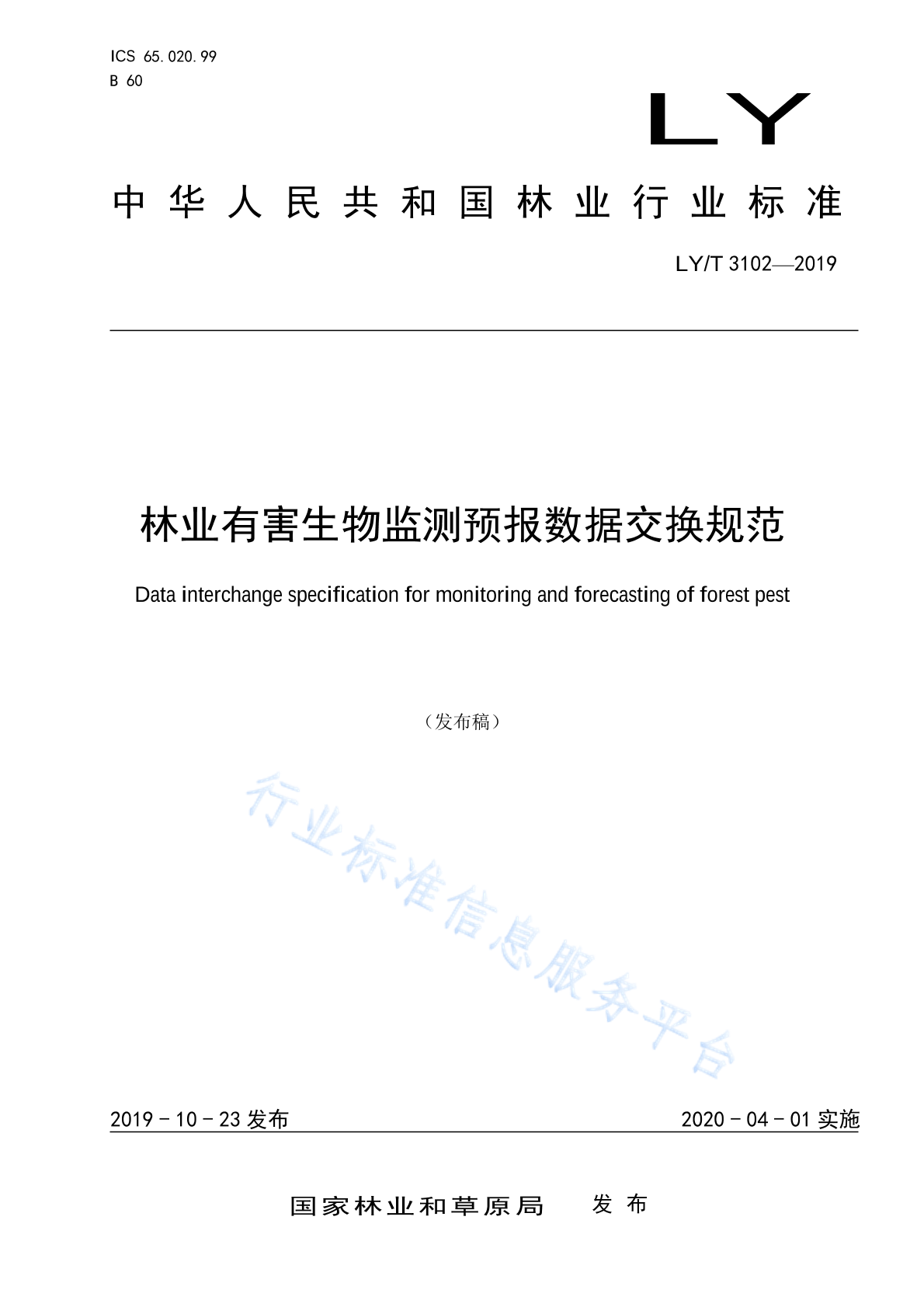LY/T 3102-2019 林业有害生物监测预报数据交换规范