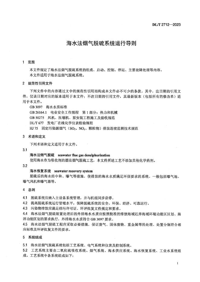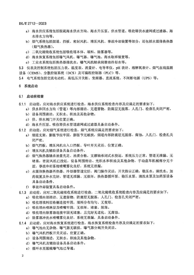 DL/T 2712-2023 海水法烟气脱硫系统运行导则