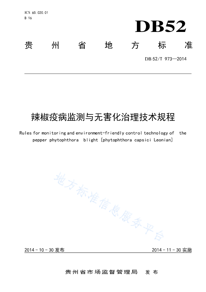 DB52/T 973-2014 辣椒疫病监测与无害化治理技术规程