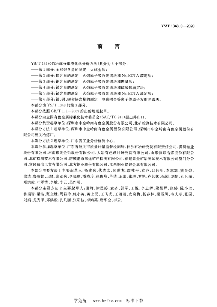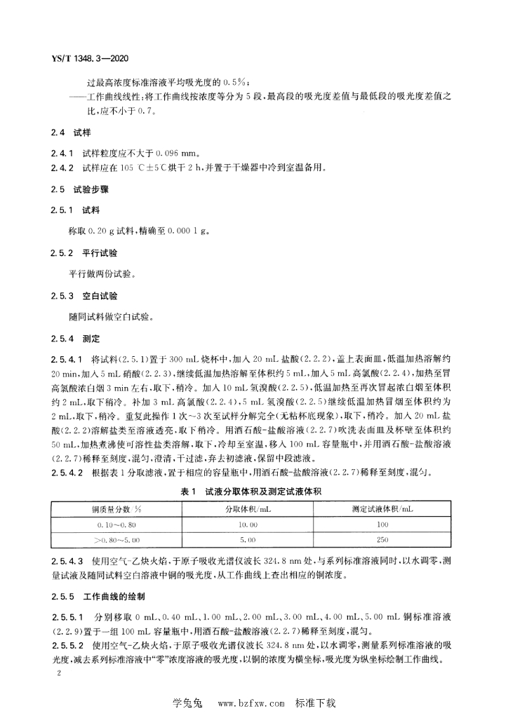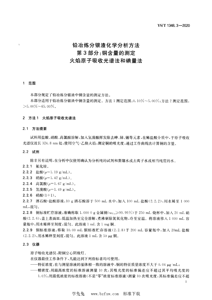 YS/T 1348.3-2020 铅冶炼分银渣化学分析方法 第3部分:铜含量的测定 火焰原子吸收光谱法和碘量法