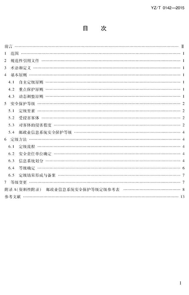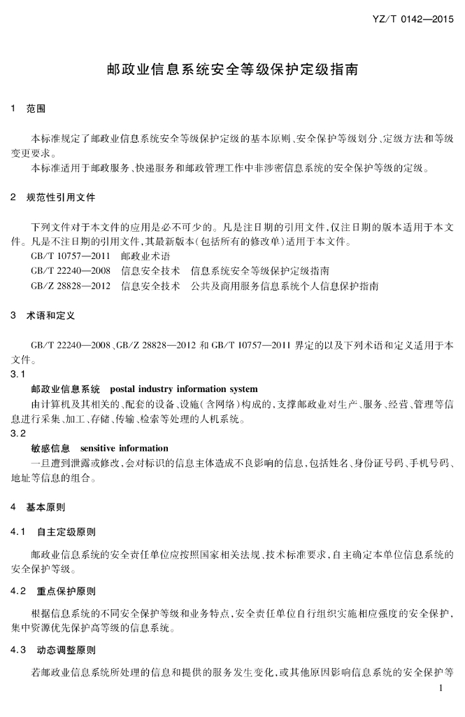 YZ/T 0142-2015 邮政业信息系统安全等级保护定级指南