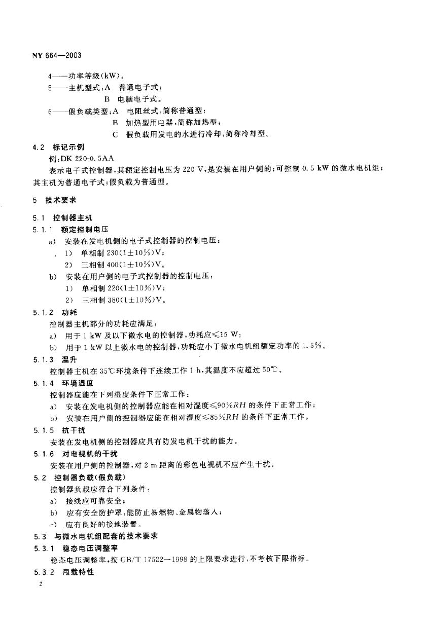 NY 664-2003 微型水力发电设备 电子式控制器技术条件