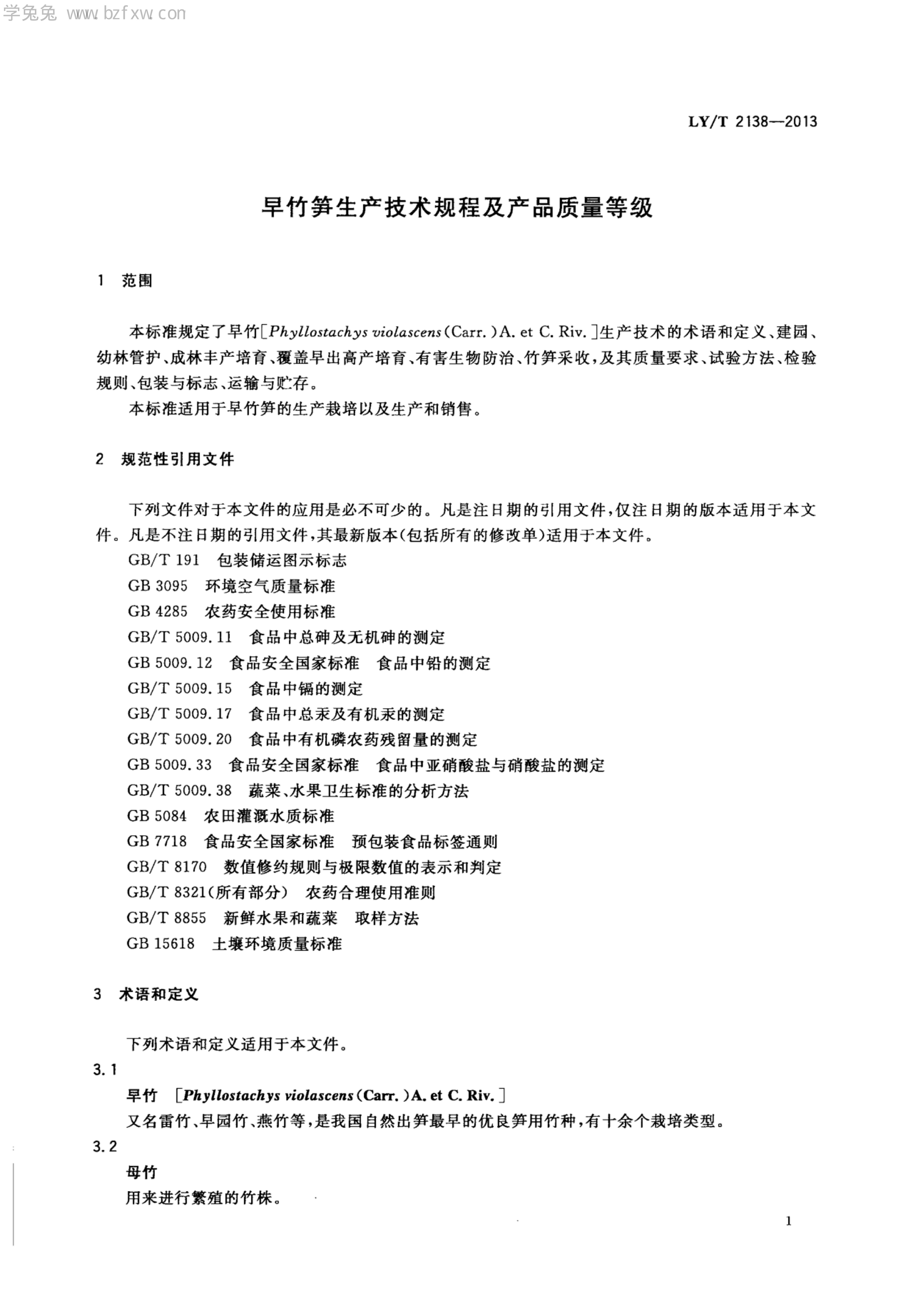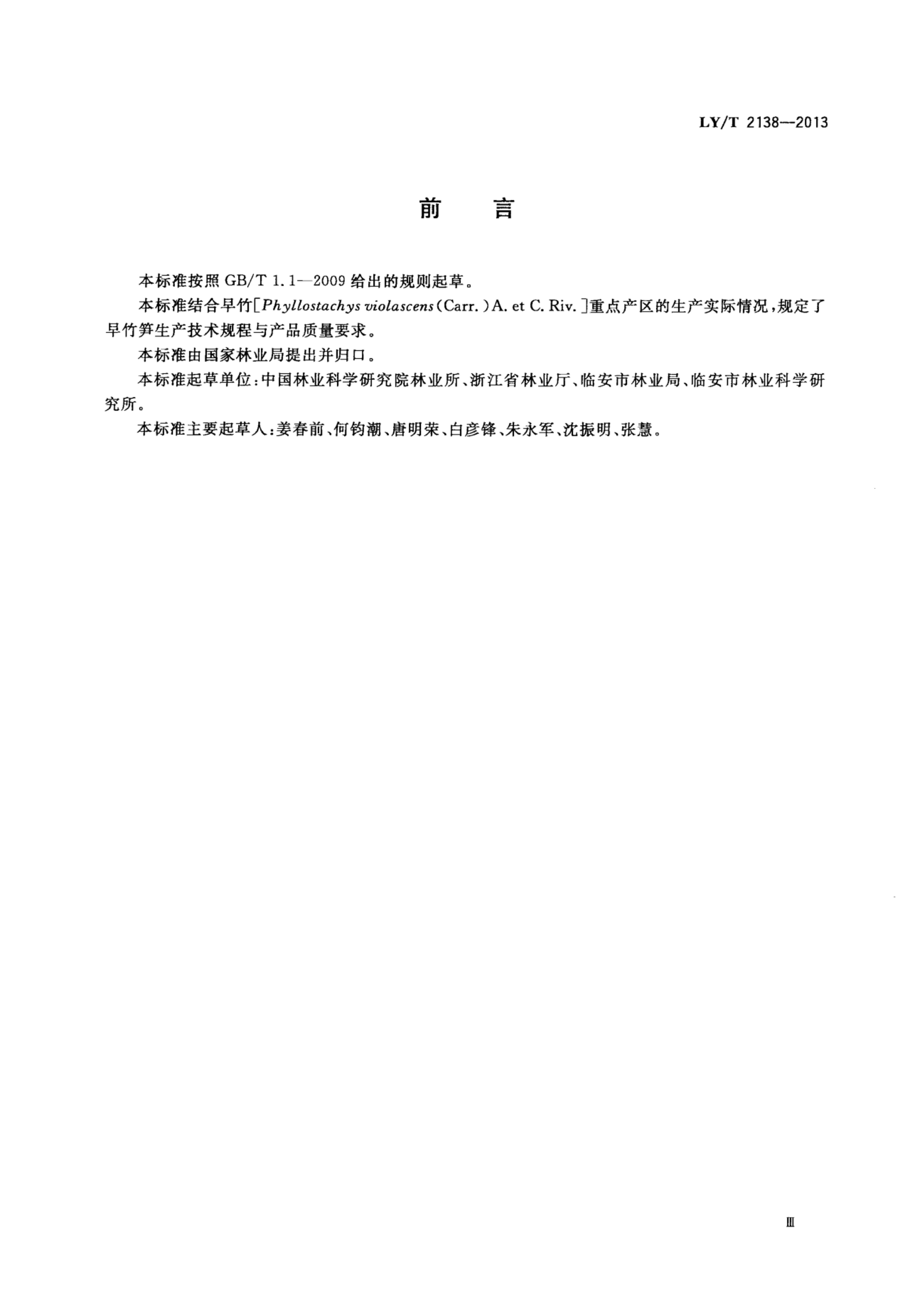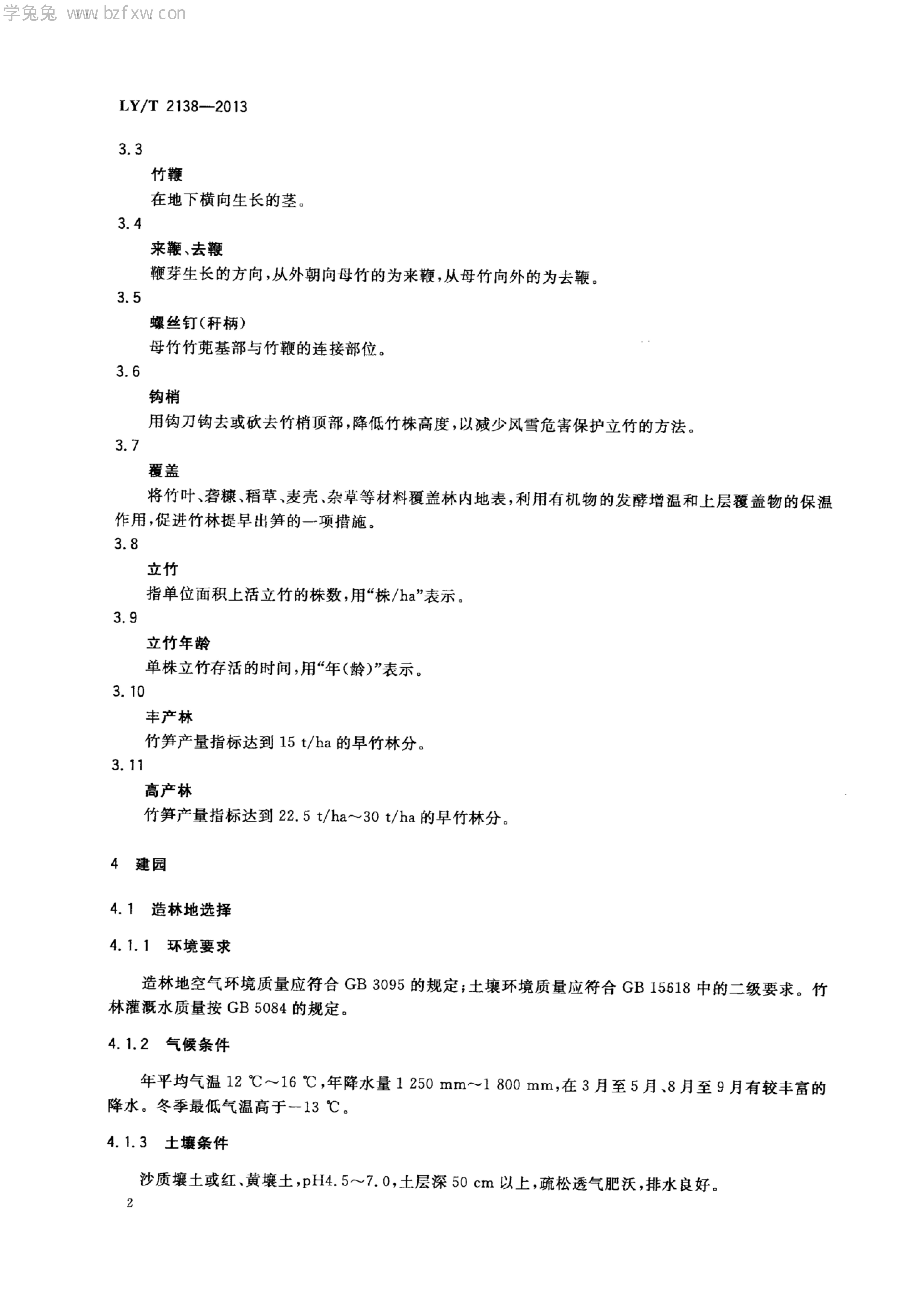 LY/T 2138-2013 早竹笋生产技术规程及产品质量等级