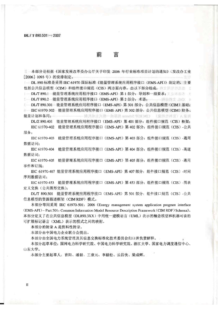 DL/T 890.501-2007 能量管理系统应用程序接口(EMS-API)第501部分:公共信息模型的资源描述框架(CIM RDF)模式