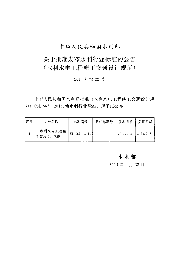 SL/T 667-2014 水利水电工程施工交通设计规范
