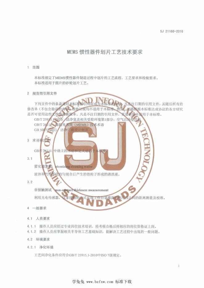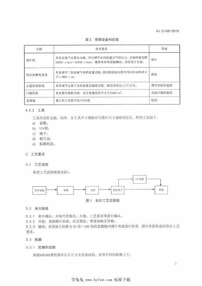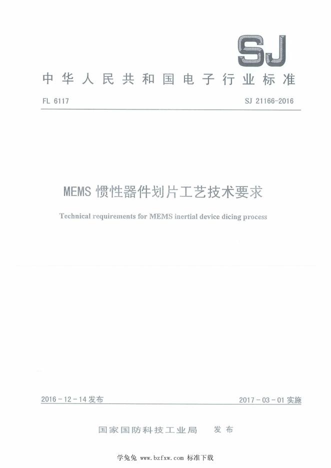 SJ 21166-2016 MEMS惯性器件划片工艺技术要求