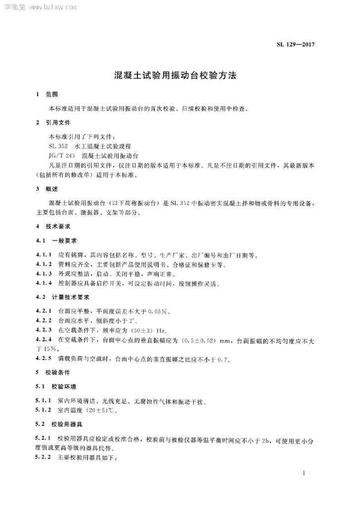SL/T 129-2017 混凝土试验用振动台校验方法