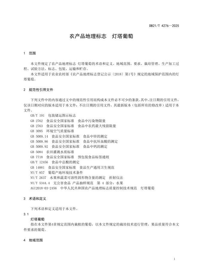 DB21/T 4276-2025 农产品地理标志 灯塔葡萄