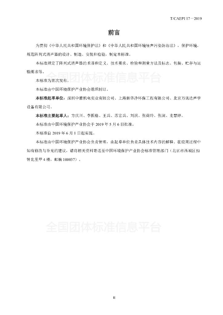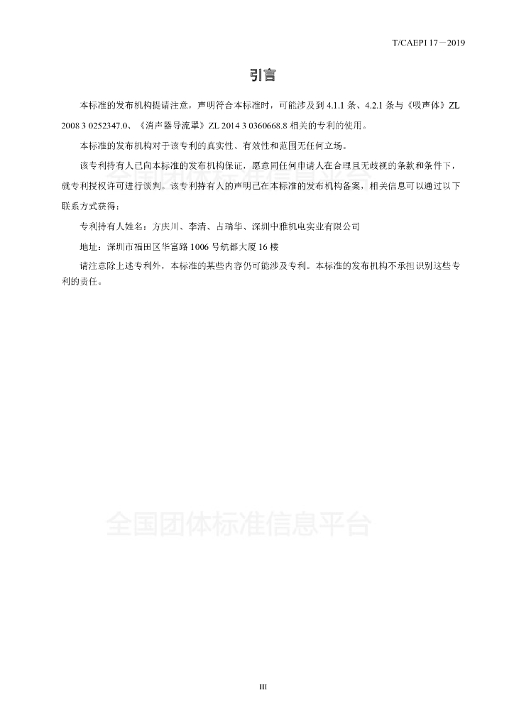 深圳中雅机电实业有限公司、上海新华净环保工程有限公司、北京万讯达声学设备有限公司