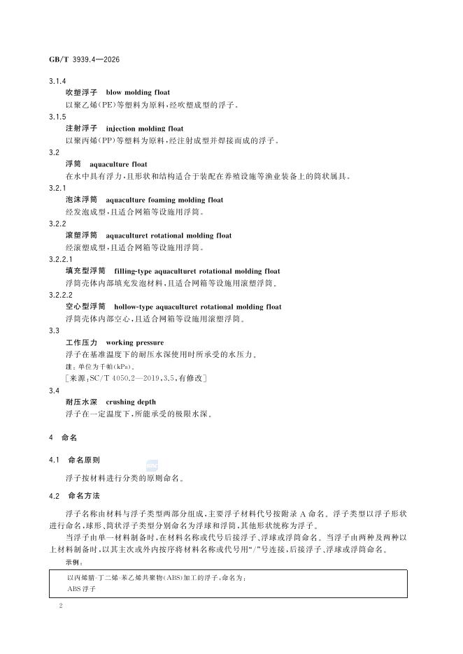 GB/T 3939.4-2026 主要渔具材料命名与标记 第4部分:浮子