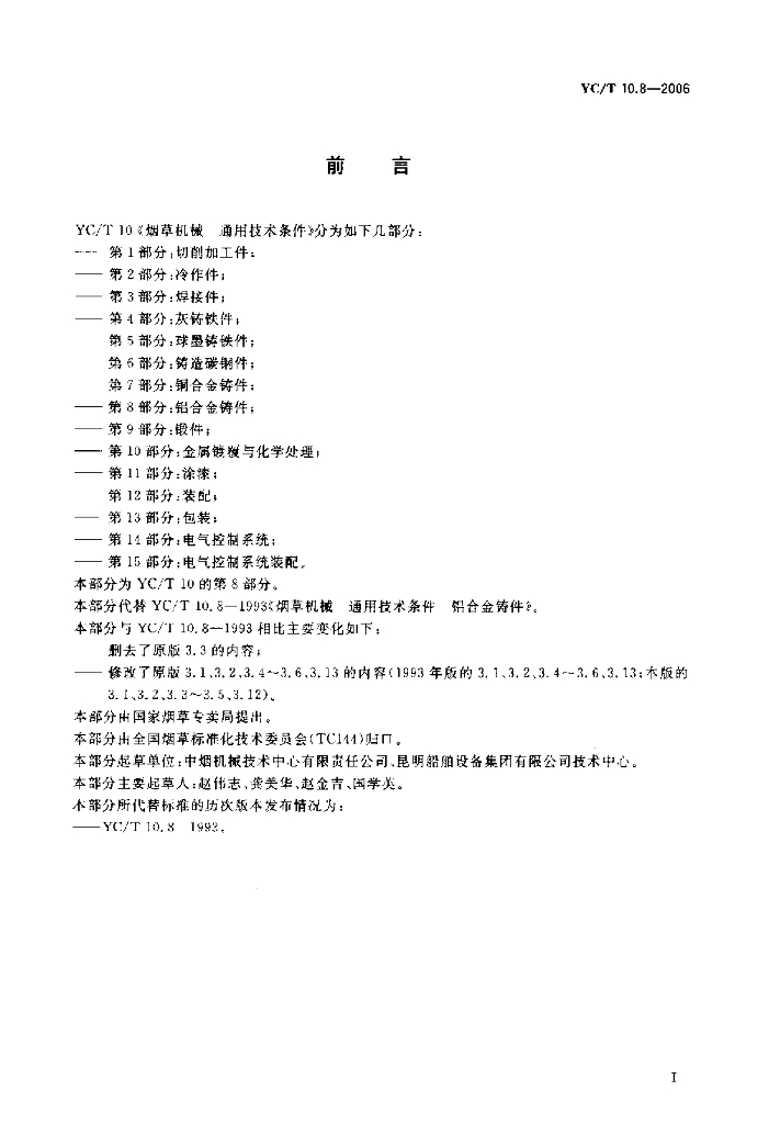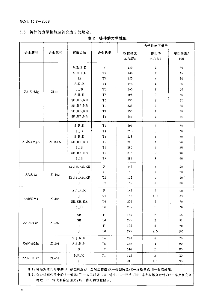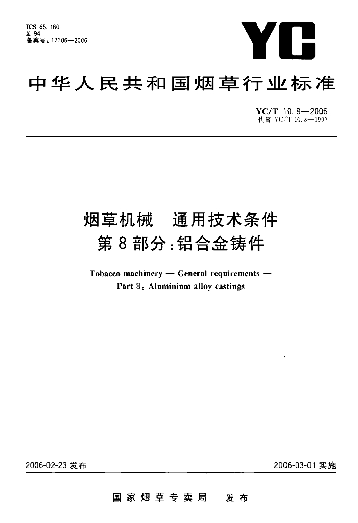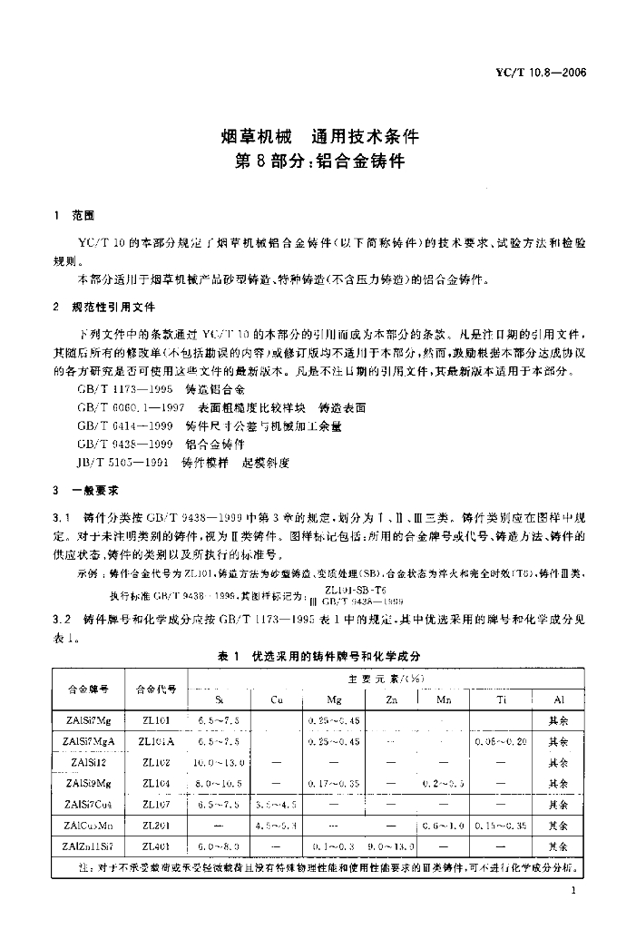 YC/T 10.8-2006 烟草机械 通用技术条件 第8部分:铝合金铸件