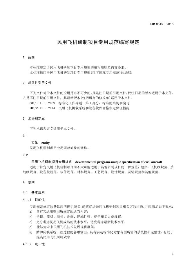 HB 8515-2015 民用飞机研制项目专用规范编写规定(2017)