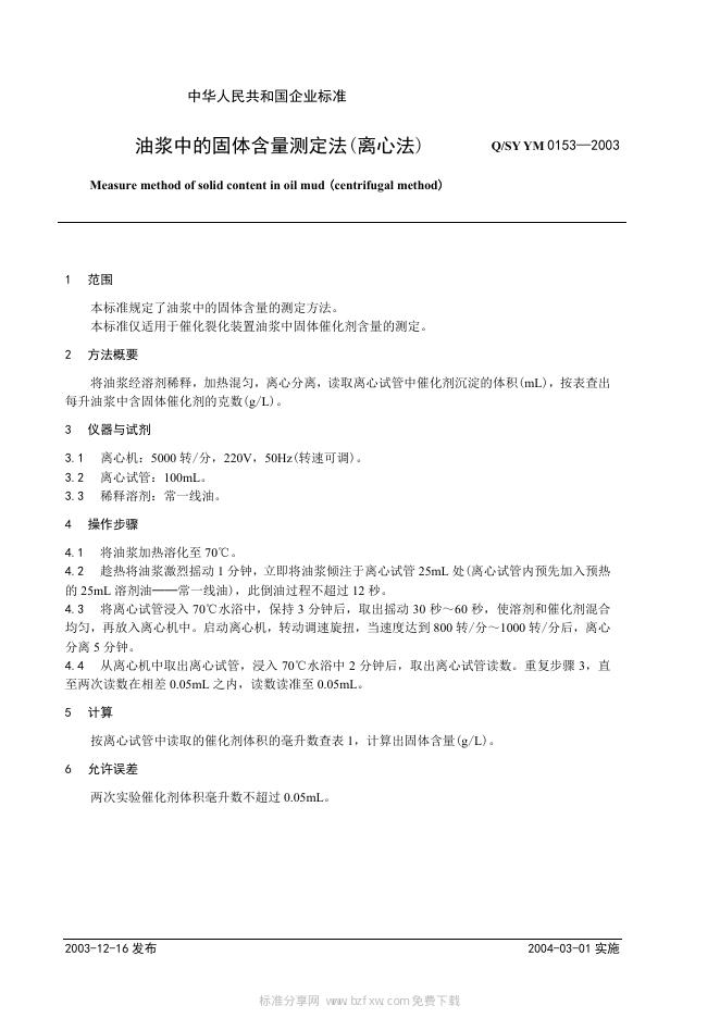Q/SY YM0153-2003 油浆中的固体含量测定法