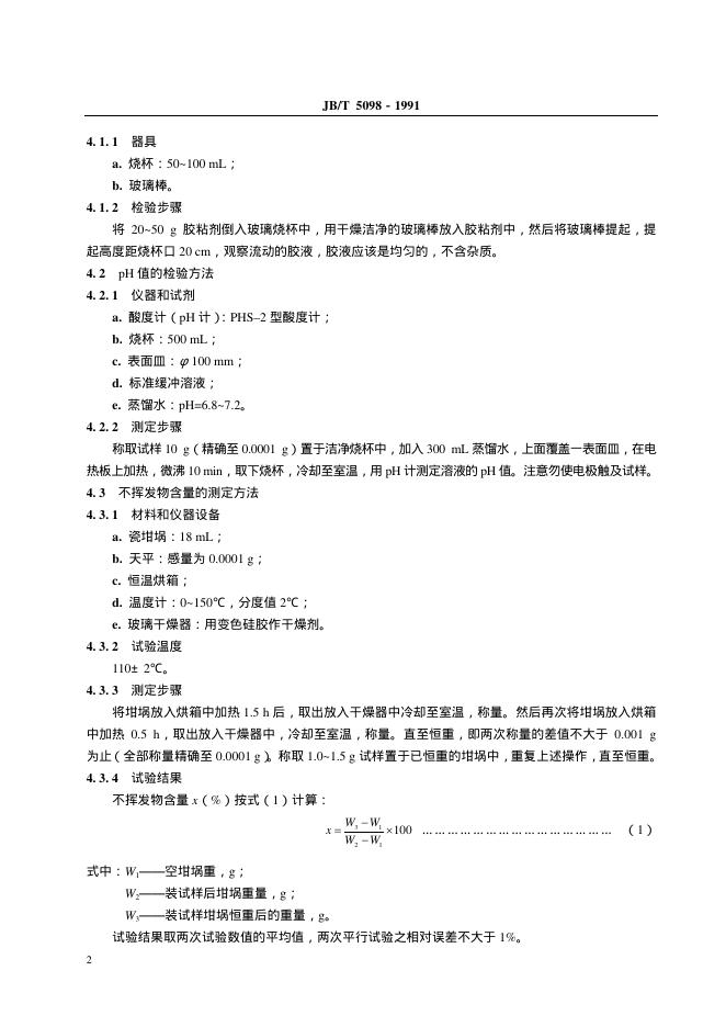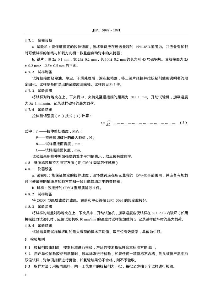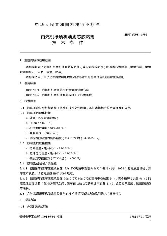 JB/T 5098-1991 内燃机纸质机油滤芯胶粘剂 技术条件