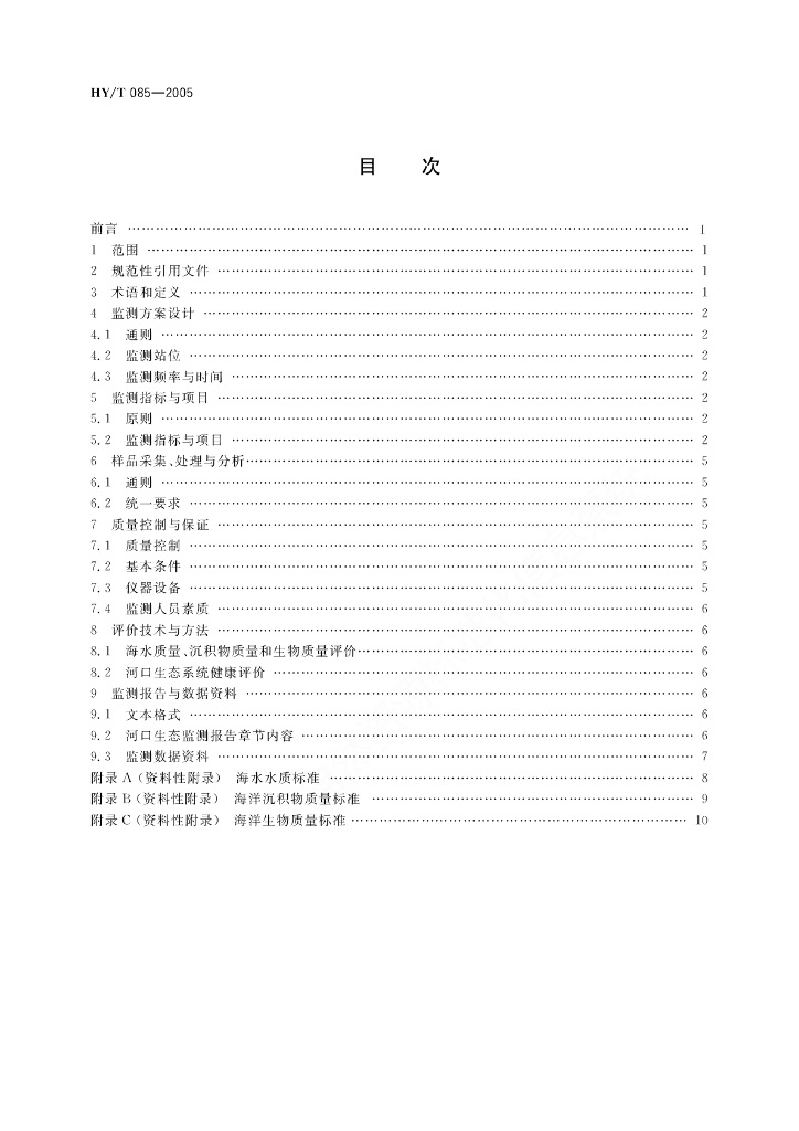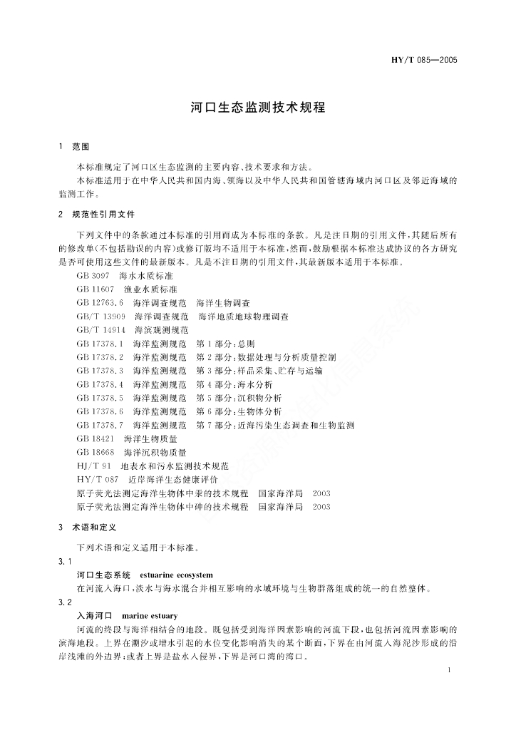 HY/T 085-2005 河口生态系统监测技术规程