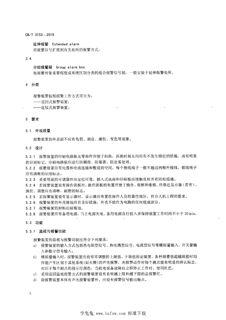 CB/T 3153-2019 船舶机舱监视报警装置技术条件