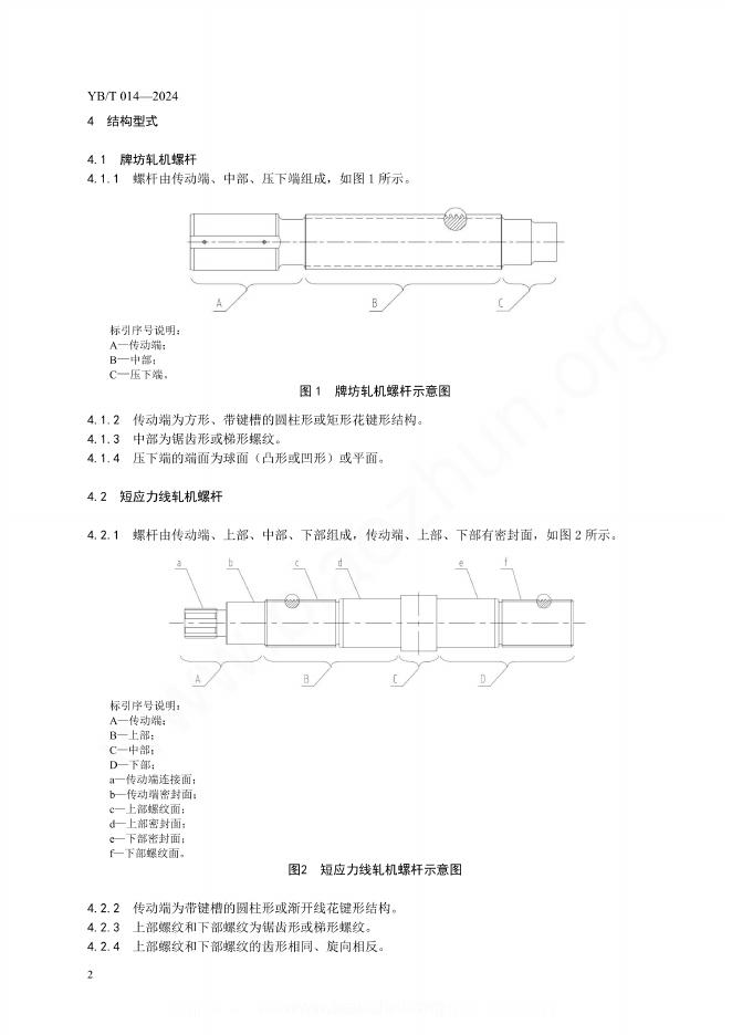 YB/T 014-2024 轧机压下(上)螺杆技术条件