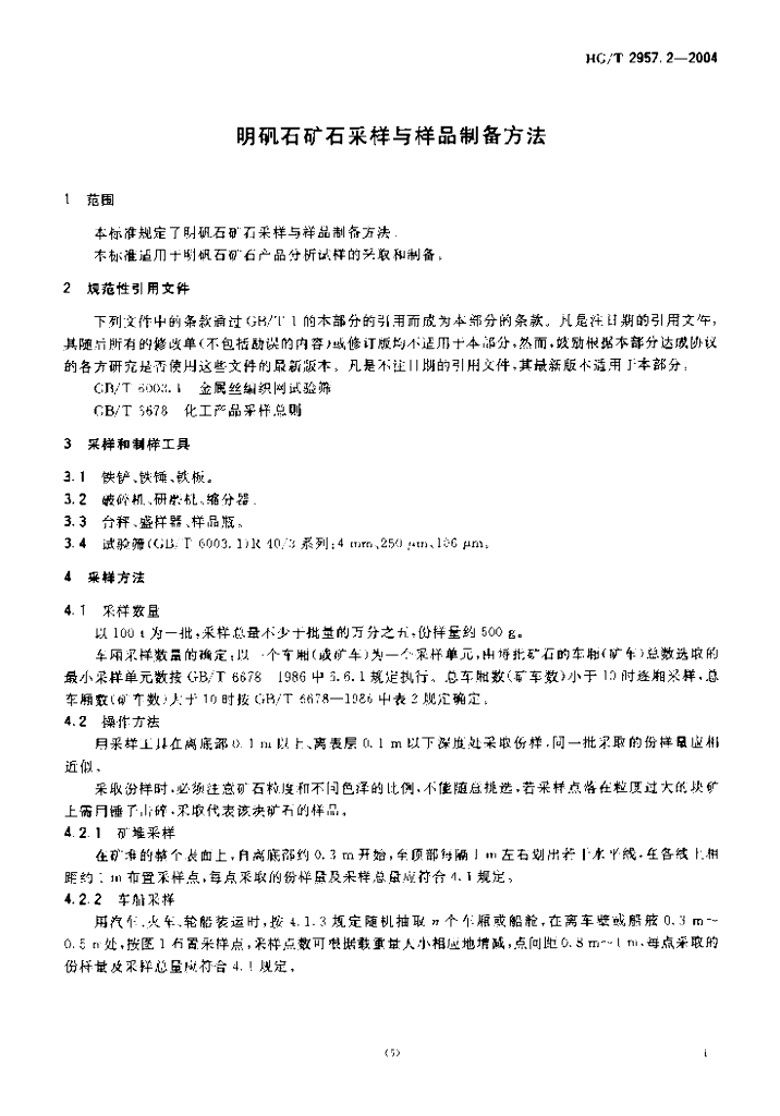 HG/T 2957.2-2004 明矾石矿石采样与样品制备方法