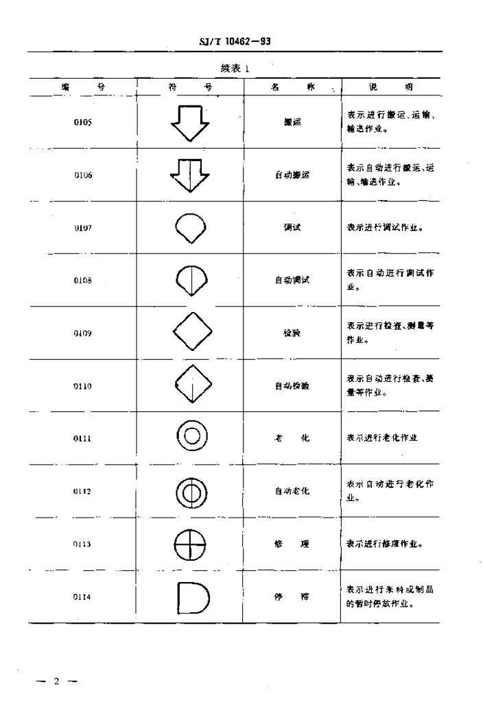 SJ/T 10462-1993 工艺管理常用图形符号