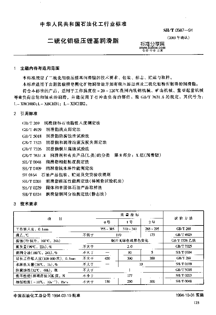SH/T 0587-1994 二硫化钼极压锂基润滑脂