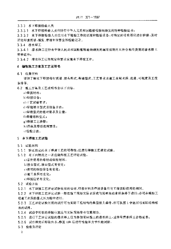 JT/T 371-1997 水下局部排水二氧化碳保护半自动焊作业规程