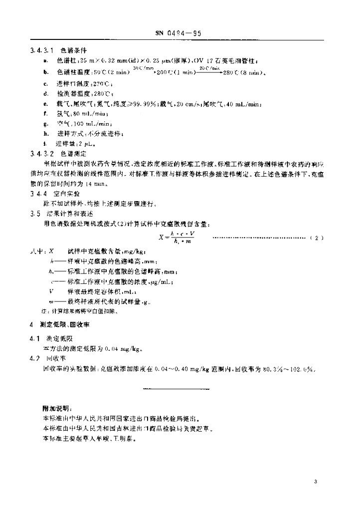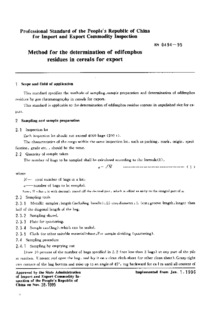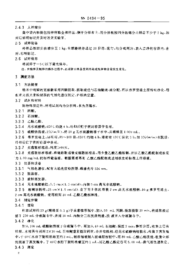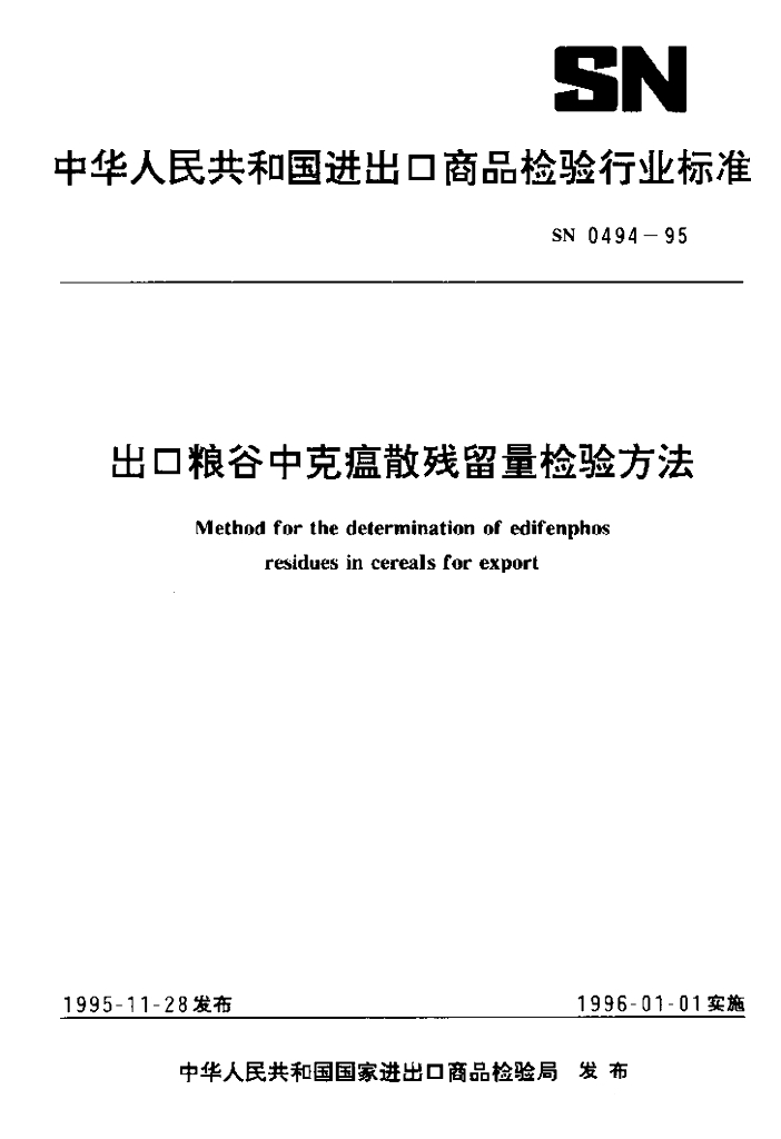 SN 0494-1995 出口粮谷中克瘟散残留量检验方法