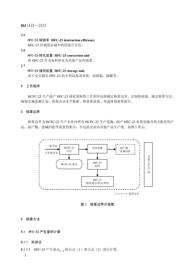 HJ 1420-2025 一氯二氟甲烷生产设施副产三氟甲烷排放核算方法与报告技术规范