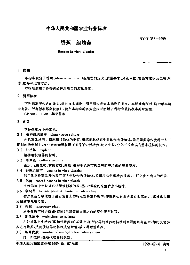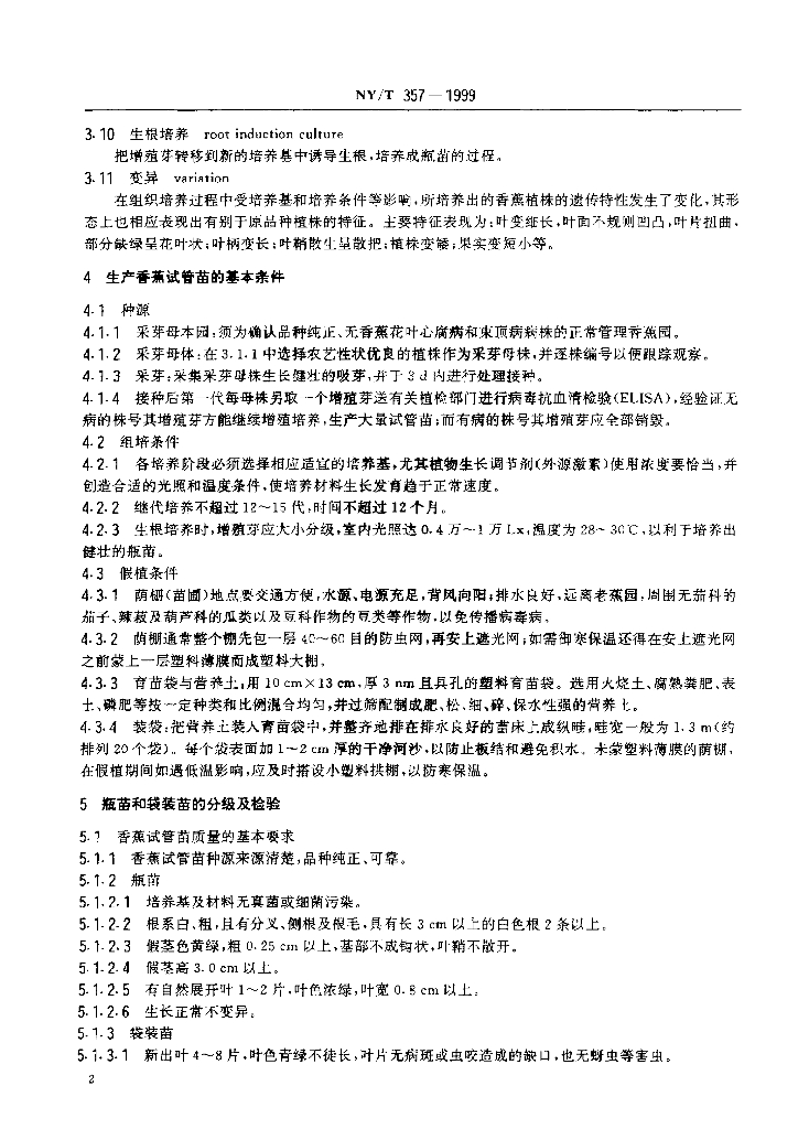 NY/T 357-1999 香蕉 组培苗