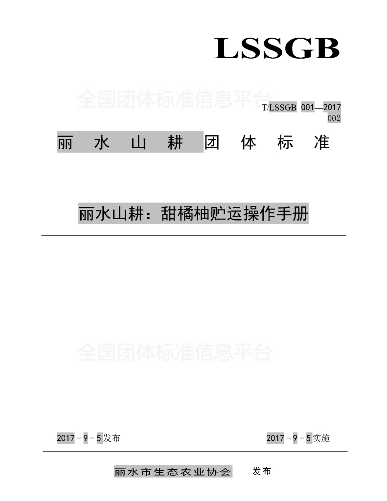 T/LSSGB 001-002-2017 丽水山耕:甜橘柚贮运操作手册