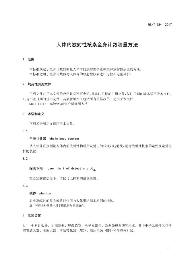 WS/T 584-2017 人体内放射性核素全身计数测量方法