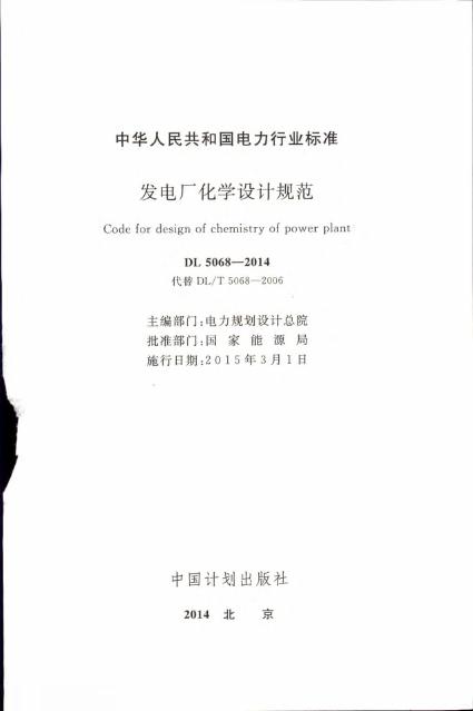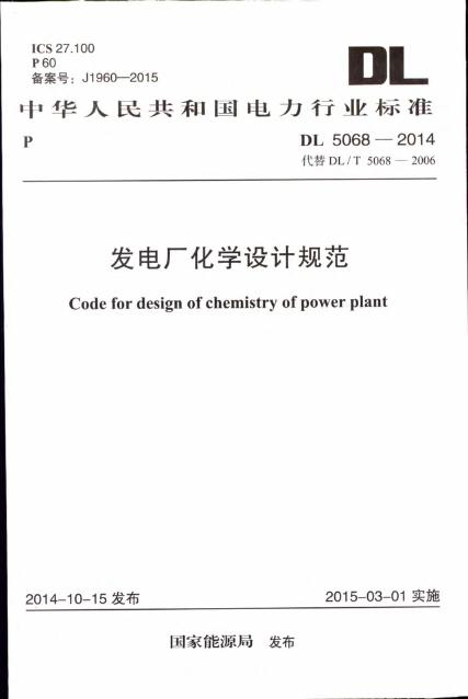 DL 5068-2014 发电厂化学设计规范(附条文说明)