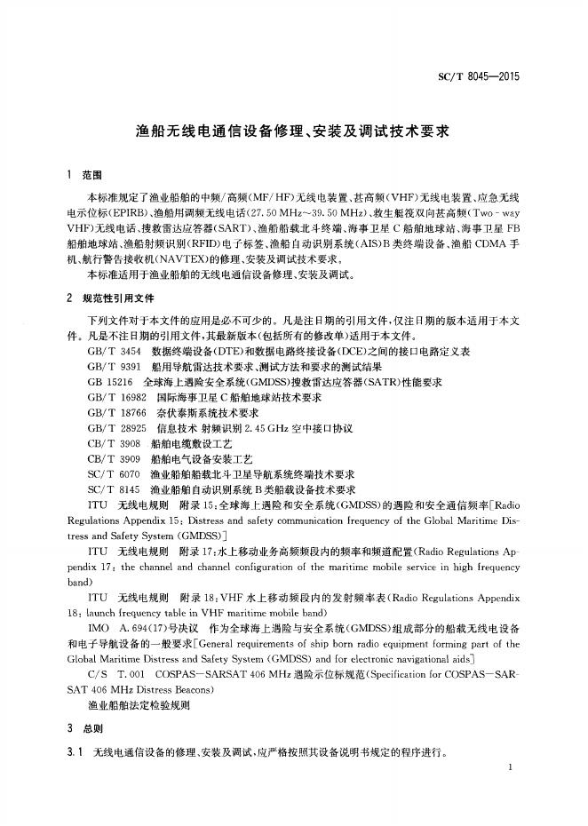 SC/T 8045-2015 渔船无线电通信设备修理、安装及调试技术要求