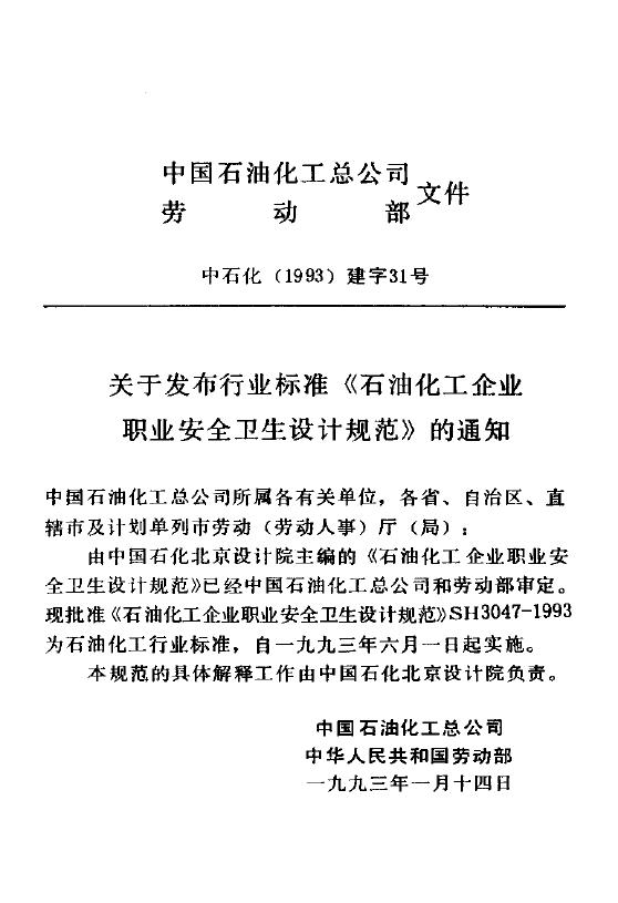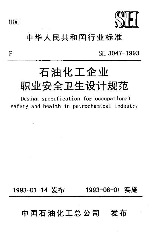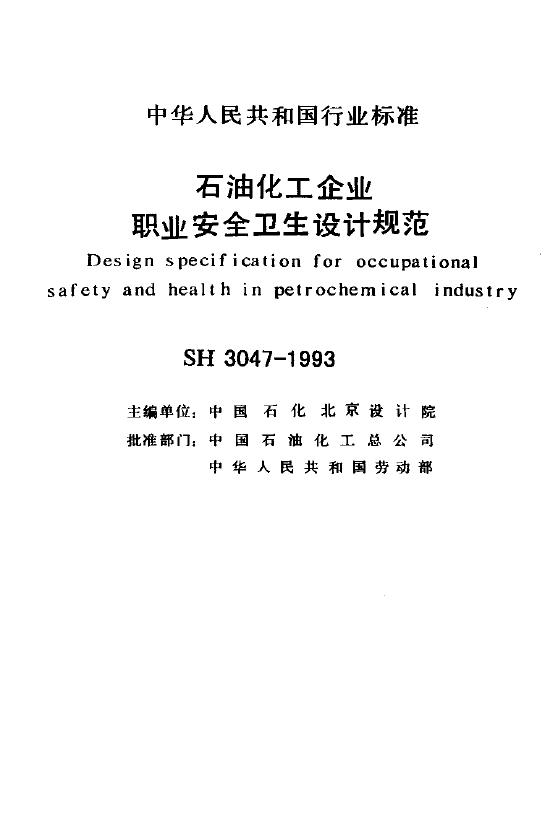 SH 3047-1993 石油化工企业职业安全卫生设计规范