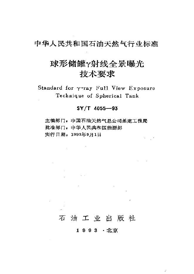 SY/T 4055-1993 球形储罐γ射线全景曝光技术要求