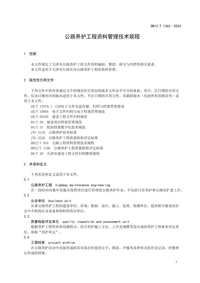 DB12/T 1362-2024 公路养护工程资料管理技术规程